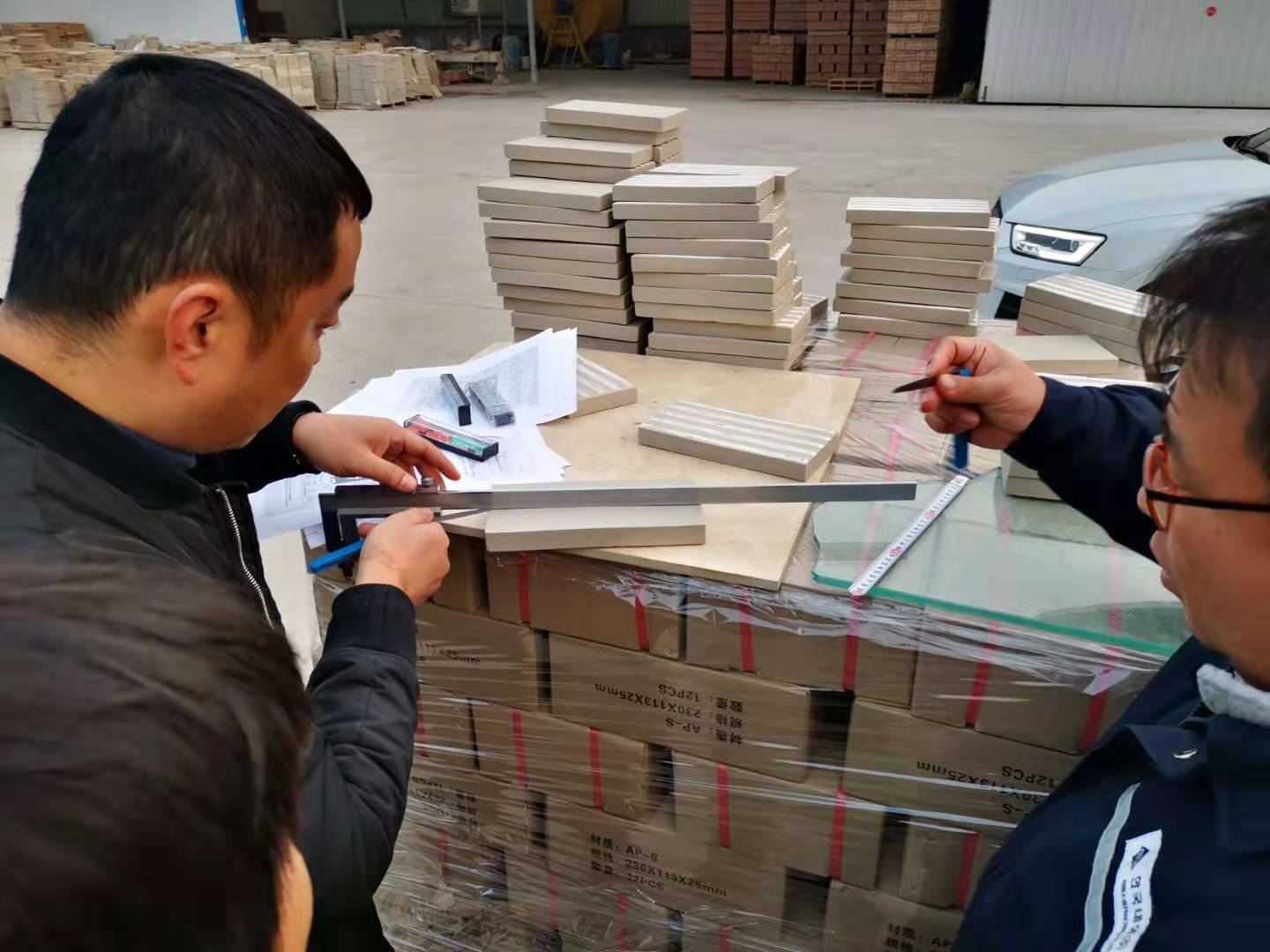 眾光耐酸磚廠家范總親臨耐酸磚檢測現(xiàn)場親自檢測剛生產出來的耐酸磚韓國客戶十分滿意